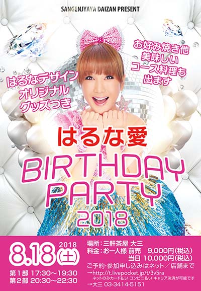 はるな愛 バースデーパーティ2018を大三にて開催いたします!